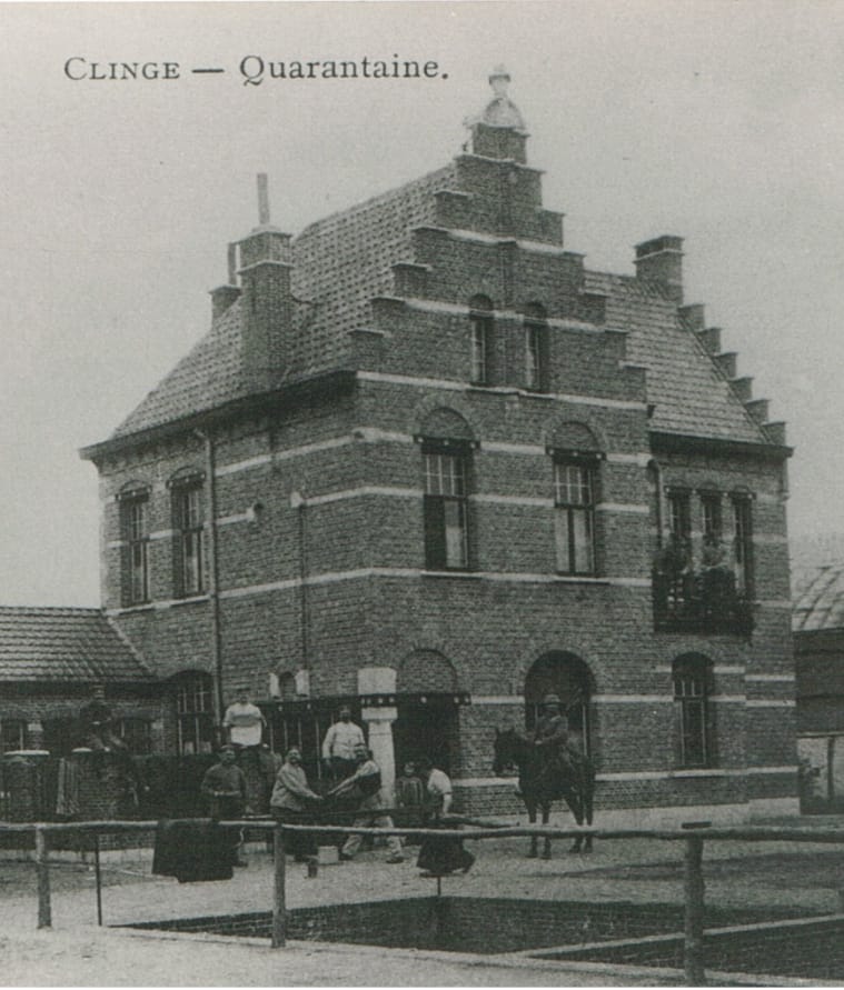 De quarantaine was een fraai gebouw dat deel uitmaakte van de infrastructuur van het station van De Klinge. Deze locatie was opgericht door inspanningen van de private spoorlijn, de douaneadministratie, het ministerie van Volksgezondheid en privaat initiatief (onder andere cafés en hotels). Dieren, die bestemd waren voor de import, moesten eerst een tijd in quarantaine verblijven om zeker te zijn dat ze geen ziektes meedroegen. Zieke dieren stuurde men terug naar Nederland.